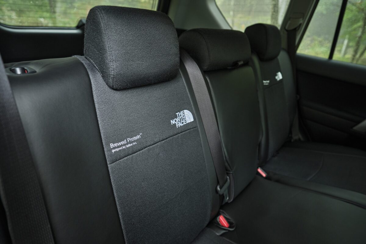 オリジナルシートカバーのデザインも、オールブラックでまとめながら、前後席シートのシートバック(背もたれ)にロゴを配置することで、不動の人気を誇るTHE NORTH FACEのアウタージャケットのようなクールな印象に。また、フロアマットには「TOYOTA」、コンソールボックスには「THE NORTH FACE」のロゴをあしらうことで、運転席周りにも特別感を演出。