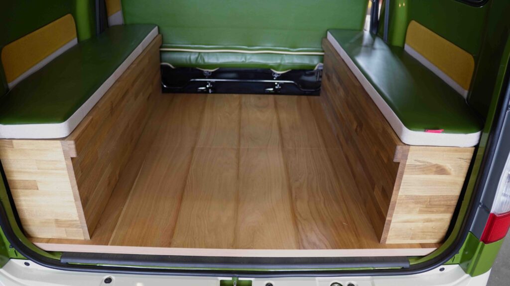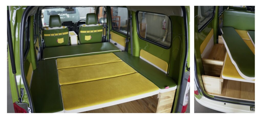 同モデルは、アウトドアと日常をつなぐ機能性と、木の温もりが感じられるサステナブルな内装が特徴で、車中泊や家族のお出かけにも対応する万能な1台だ。外装にはクラシカルな深緑色の特別塗装を施し、特製ホイールやタイヤ、エアロキットなども装備。価格は4,950,000円(税込)。