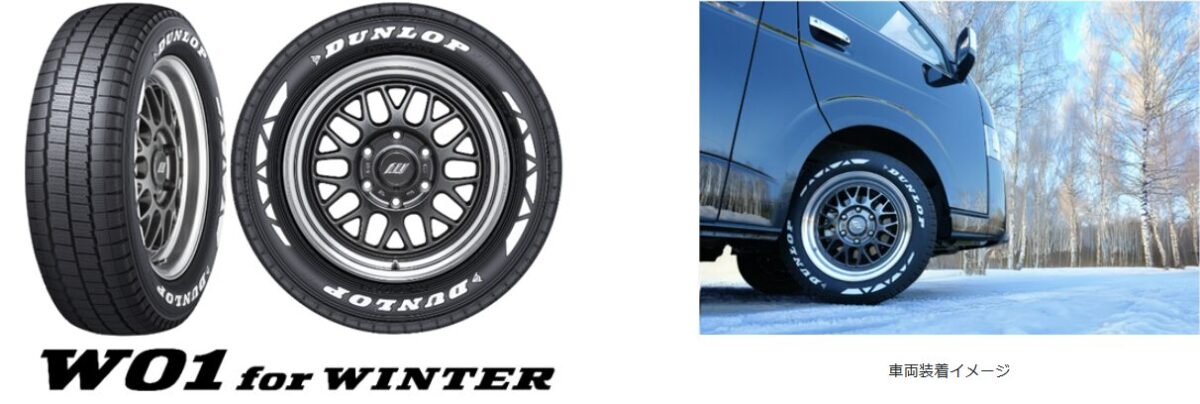 新商品は3月に発売し好評を得ている夏用タイヤ「W01」※3のスタッドレスタイヤで、「W01」として1年中ワンボックスカーでのドレスアップが可能になります。優れた氷雪上性能と長持ち設計により、商用車ユーザーや事業者が重視する冬道での安全性とコスト効率を両立します。