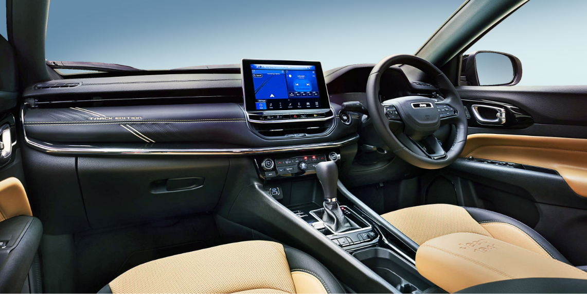 エクステリアには、ボディ同色のフロントフェイシアとホイールフレア、シルモールディングに加え、グレーのアクセントを施し、スタイリッシュな印象に仕上げました。さらに、ジープロゴバッジを従来のクロームからグロスブラックへ変更したうえで専用の“TRACK”バッジを装着することで、限定車ならではの存在感を際立たせています。