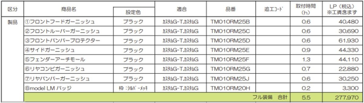サンショウ株式会社は、同社が展開するカスタマイズブランド「model LM(モデルエルエム)」より、トヨタ『ルーミー』向けのカスタマイズパーツ8品目を新たに発売した。