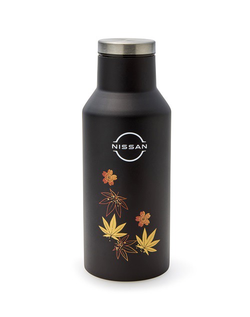 高度な山中塗の蒔絵技術を施したステンレスボトルです。“つや消し黒”と“伝統的なモミジ柄”を絶妙にバランスさせたデザインです。