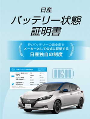 日産自動車株式会社は、中古電気自動車(EV)のバッテリー健全度(SOH)をメーカーが公式に証明する「日産バッテリー状態証明書」のトライアル運用を開始すると発表した。