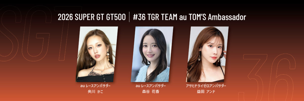 史上初のシリーズ3連覇を達成した1号車は、初心を忘れることなくゼッケンを36へもどし、本年も「KDDI株式会社」様をメインスポンサーに、「TGR TEAM au TOM’S」として活動いたします。ドライバーは、昨年のチャンピオンコンビとなる坪井翔選手と山下健太選手が継続参戦。監督も伊藤大輔が継続し、前人未踏の4連覇をかけて挑みます。