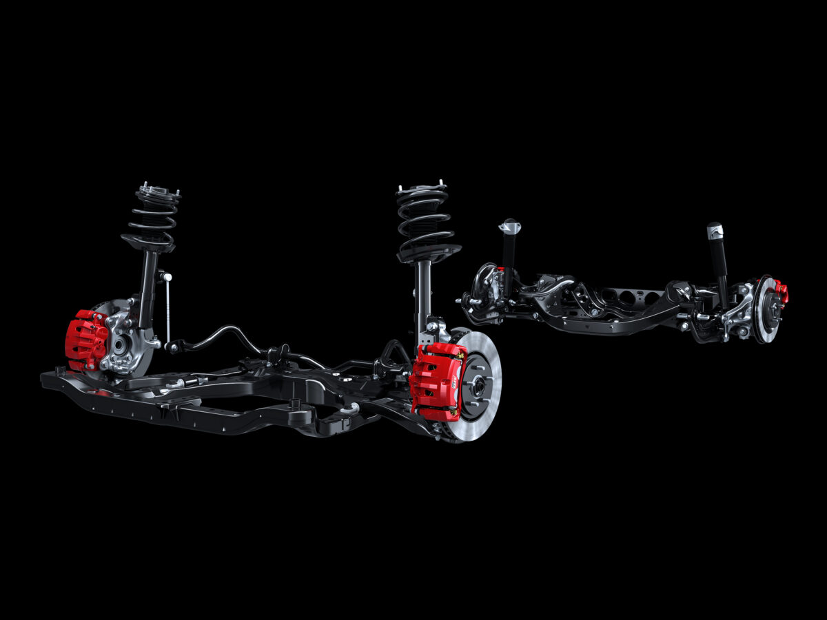 「パフォーマンスダンパー」の追加により、車体そのものに減衰特性を付与することで、走行中に生じるボディの変形を素早く収束し、車体の不快なねじれや不安定な挙動を抑えます。さらに、リヤサスペンションメンバーのブレース補強により、ダイレクトな操舵感を高めています。