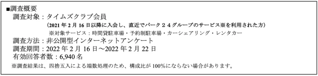 パーク24株式会社(本社:東京都品川区、社長:西川光一)は、8月9日「駐車場(パーク)の日」を前に、路上駐車防止の啓発活動の一環として、ドライバー向け会員制サービス「タイムズクラブ」※1の会員を対象に、「路上駐車」に関する意識調査を実施いたしました。