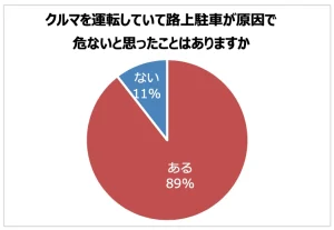 今回の意識調査では、89%が「路上駐車が原因で危ないと思ったことがある」と回答しています。アンケートを開始した2013年以降、毎回約9割となっており、傾向に変化はありません。