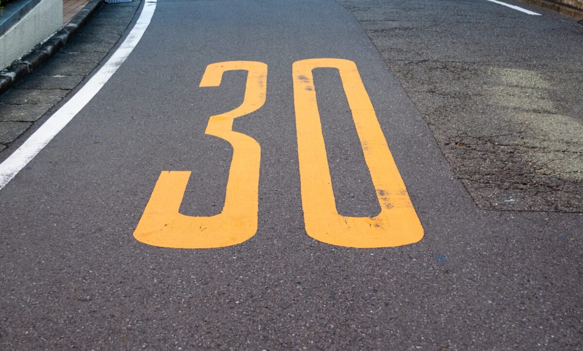 規制標示の一例としてよく見られるのが、黄色で描かれた30や50などの数字です。これは制限速度を示す、最も親しまれている規制標示のひとつといえそうです。