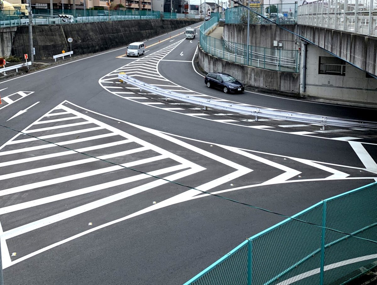 ゼブラゾーン=導流帯 車両を誘導するために設置されている