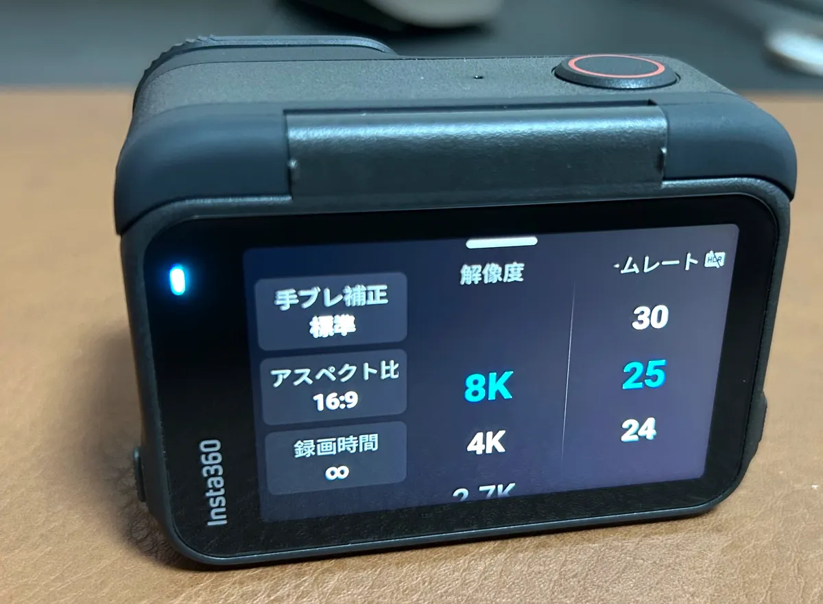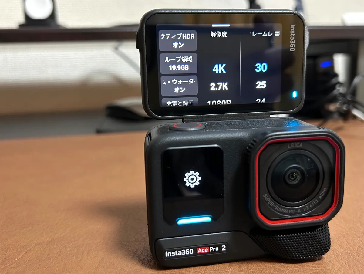 Ace Pro 2はアクションメラとしては一般的な1080Pから最高8Kまでの解像度に対応しており、画質やフレームレートはタッチパネルで簡単に変更することができます。