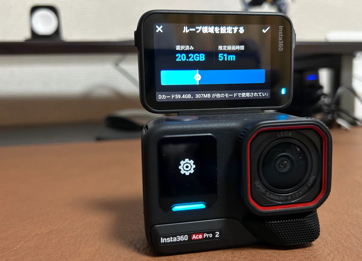 通常アクションカメラは常時撮影するものではなく「ここぞ!」という時に撮影するものですが、ところがAce Pro 2は常時撮影を念頭に置いたドラレコモードを搭載しています。