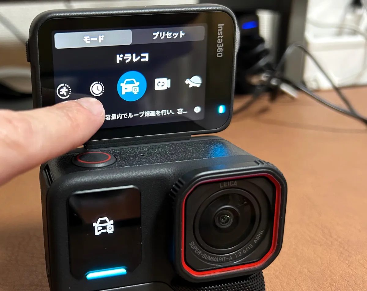ドラレコモードに設定すると最高画質が8Kではなく「4K30フレーム」に制限され、保存容量をオーバーすると古い録画データから上書きされる「ループ録画」になります。