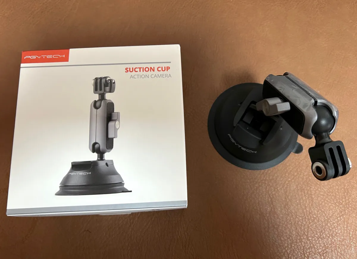 とにかく視界が広くて「ドライブ映像の記録」には最適なマウント場所で、今回はInsta360の公式サイトでも販売している「PGYTECH 車載吸盤マウント」を使ってみました。