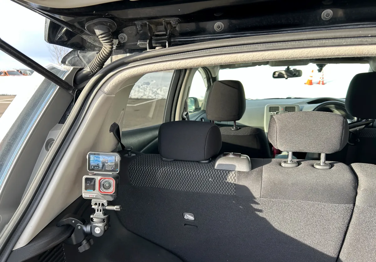 ちなみにリアガラスに直接吸盤マウントで貼り付ける方法もありますが、北海道の冬は常時マイナス気温でリアガラスが冷えっ冷えなので(フロントガラスは常時ヒーター稼働)…吸盤の吸着力が弱まる可能性があると判断し、結局この方法に落ち着きました。