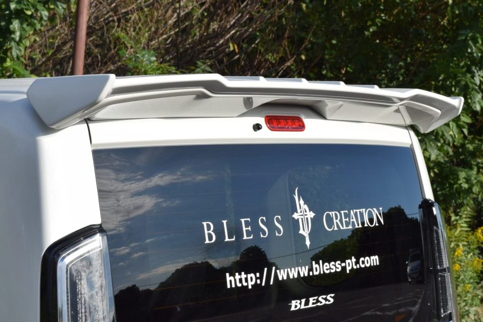 ブレスクリエイションの定番アイテム、ボンネットスポイラー。ワイパーを逃がすために設けた窪みが、デザイン上のアクセントになっている。また視認性向上に繋がり、センターラインが見えやすくなるという二次的な効果を生み出した。ファッション性が高いうえに、ウィンドウに虫が付きにくくなるなど機能性も兼ね備えた優れものだ。