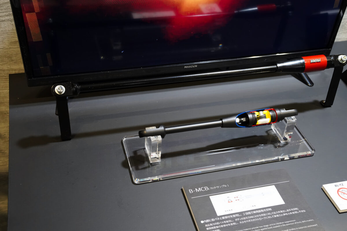 タワーバーなどの定番アイテムに加えて、ブリッツが注力しているのが「B-MCB」というボディアシストパーツである。これはアイシンが開発した「Motion Control Beam(モーションコントロールビーム)」の機構を採用し、内部のスプリングと摩擦機構が「荷重に対する反力」を発生させることで、ボディの横揺れや縦揺れを収束させる。