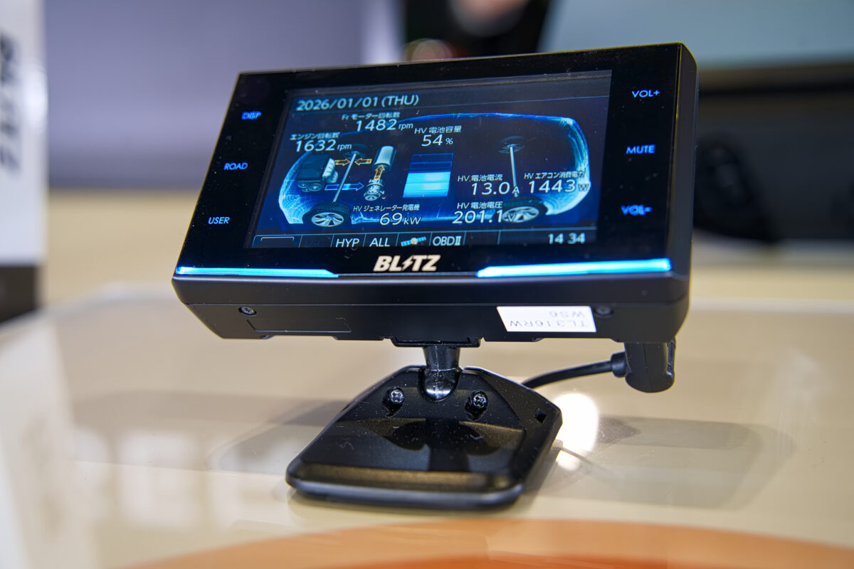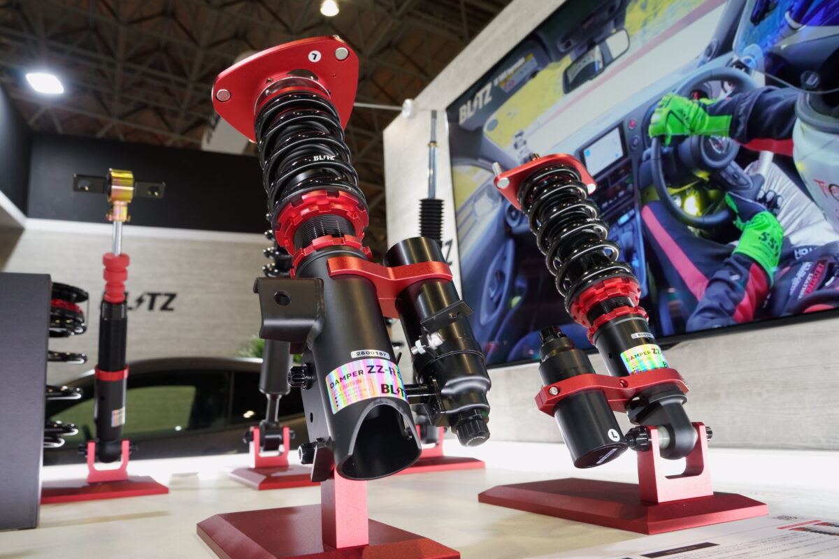 ブリッツブースでとくに注目すべきは、今回が初公開となるアイテムを含む3つの主力製品だ。電子パーツから足まわり、そしてボディ補強に至るまで、総合パーツメーカーならではの多彩なラインナップが揃う。