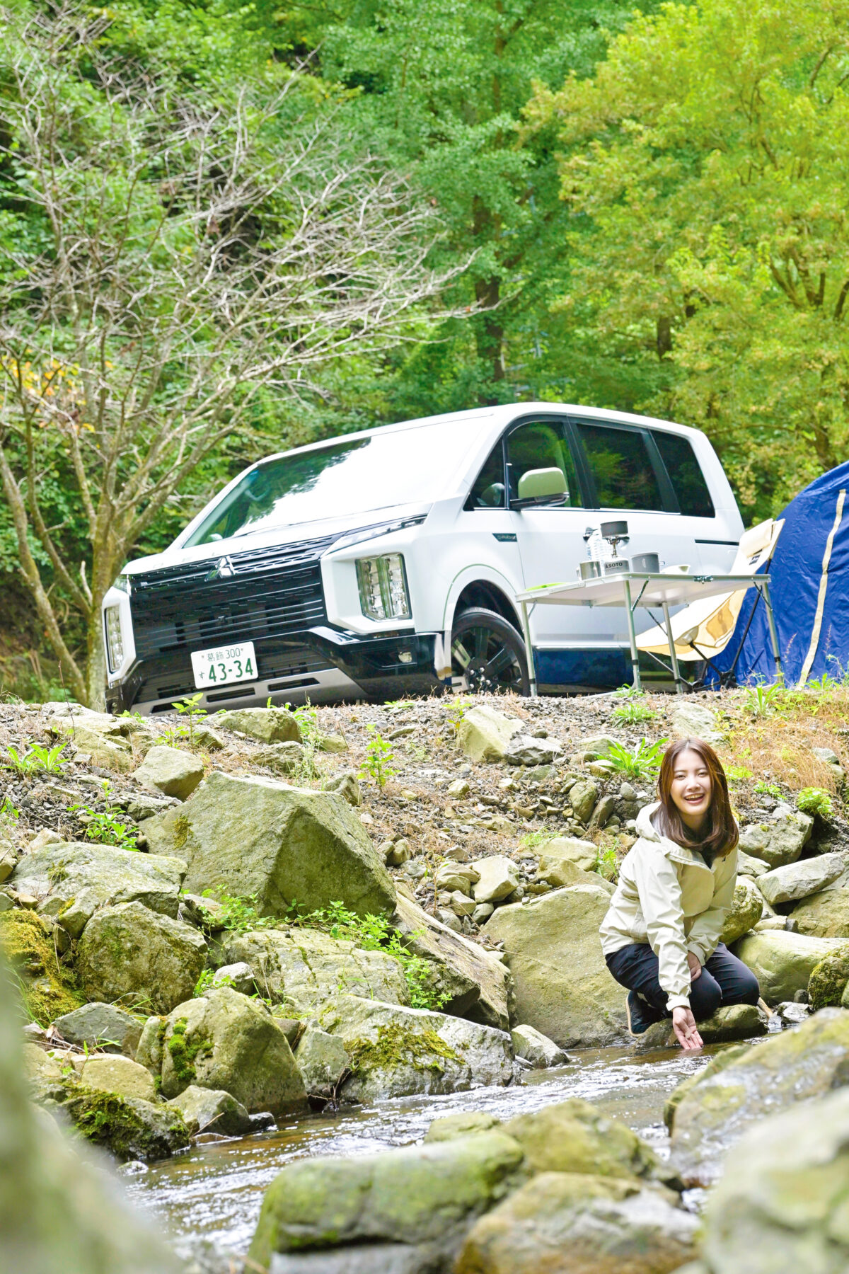 今回のアウトドア遊びで使用したミツビシ・デリカD:5ならその余裕のスペースでアウトドアで楽しむ道具を満載できる。