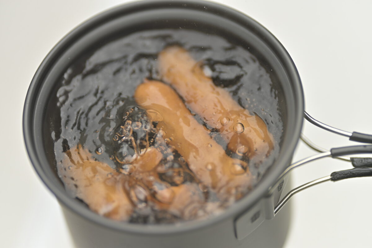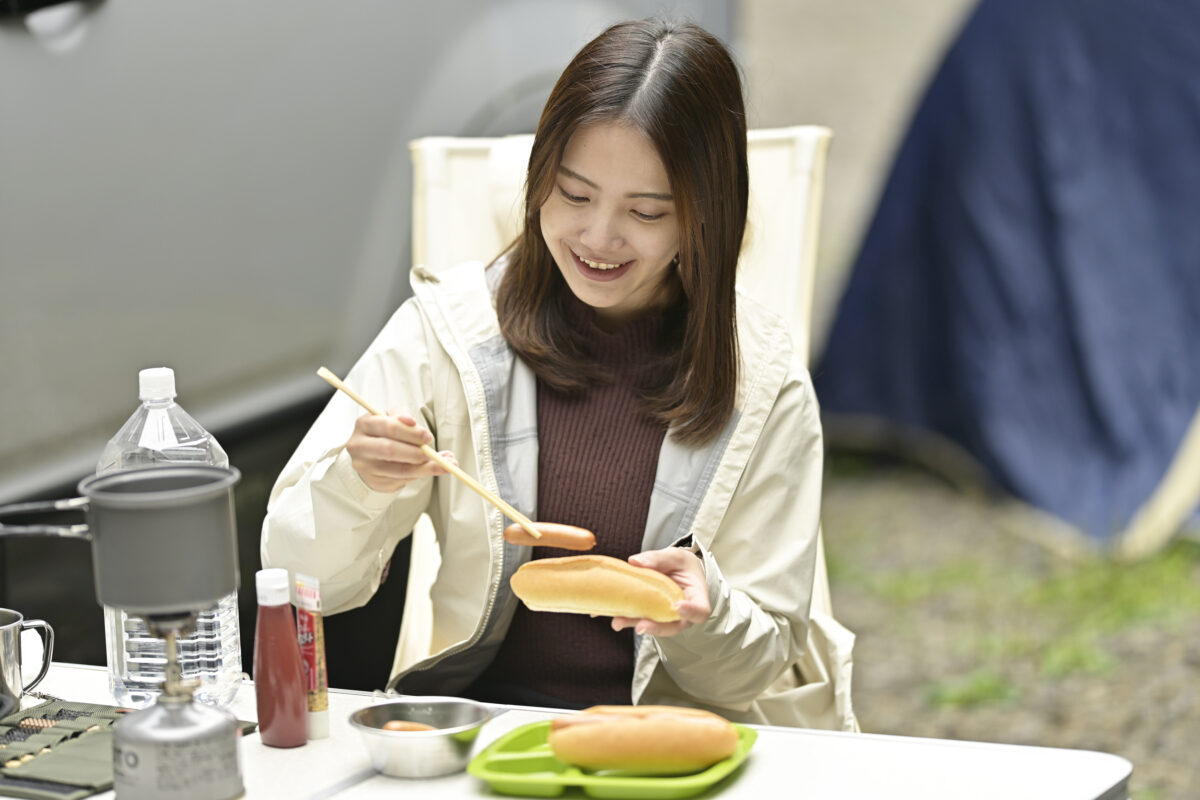 まずはお湯を沸かし、ソーセージをボイルする。焼きが好きな方はそれでもOKだ。完成したホットドッグはものの10分で作ったとは思えない美味しさ。簡単調理もアウトドアでは十分楽しめる。