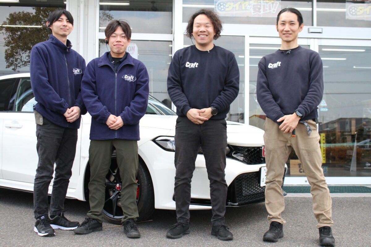 今回紹介する、三重県の「クラフト鈴鹿店」は、スポーツカーから軽自動車、ミニバン、アーバンオフ系(※)まで幅広く対応。初心者でも気軽に相談できる雰囲気と、玄人を唸らせる技術力の両方を兼ね備えたショップだ。