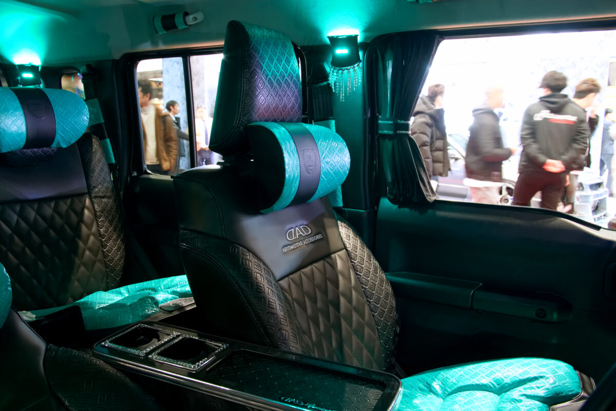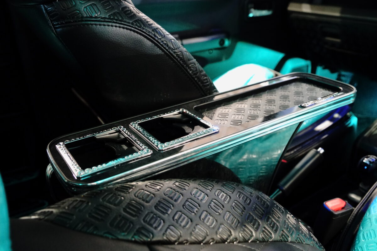 本来、実用本位で簡素なジムニーの室内も、D.A.Dの手にかかればゴージャスなプライベート空間へと一変する。
