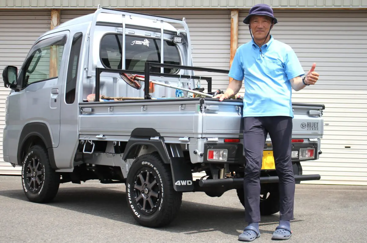 「リヤエンジンのスバル・サンバーから、今のハイゼットジャンボに乗り替えました。農作業用の芝刈り機を安定して積載するためにトラレールの導入を決めました」