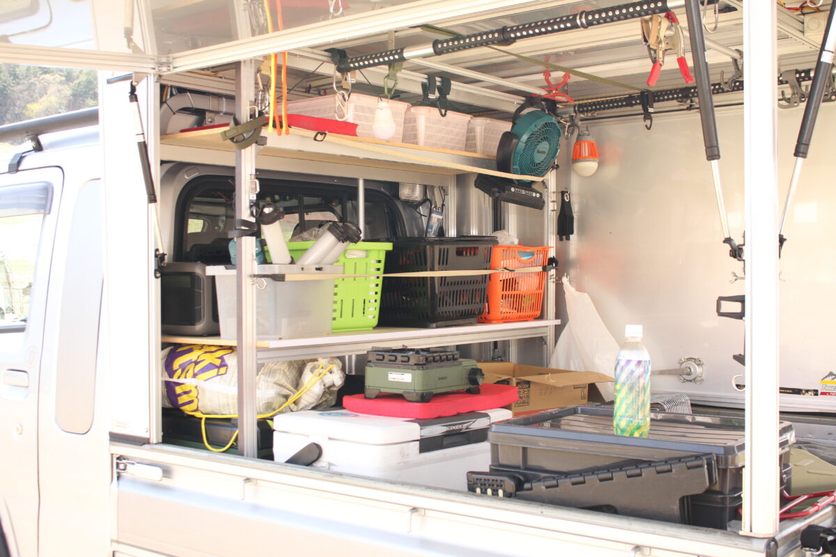 「以前に乗っていた幌付きの軽トラでは、カッターで切られて中の道具や材料を盗まれてしまったんです。もともと幌は防犯性に難がありましたし、雨や風に弱いという弱点もありました。
