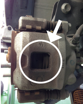 ブレーキキャリパーの横にパッドを確認できる窓がある。