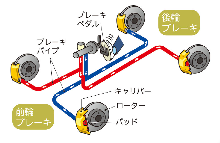 ブレーキを踏むことで上のイラストのように各部品が連動する。
