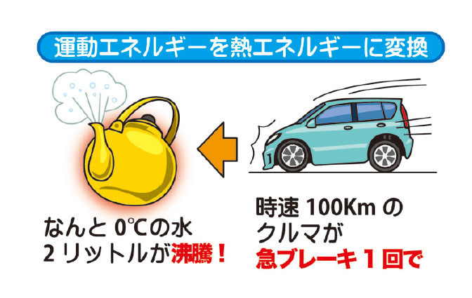 運動エネルギーを熱エネルギーに変換してブレーキは効く