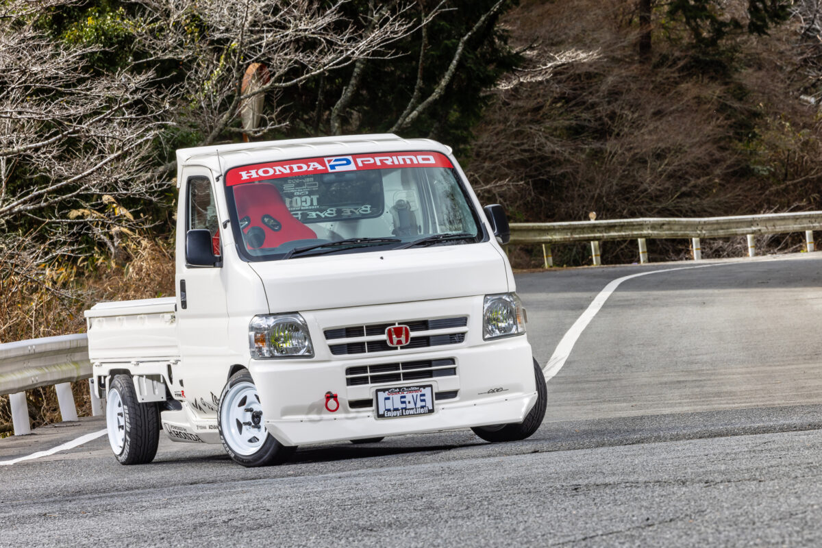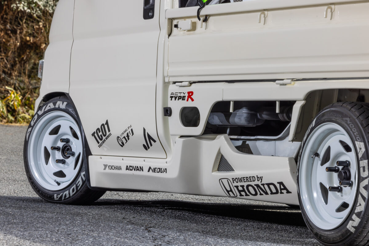「素直に、アクティトラックに“タイプR”があったら面白いなと考えました。4代目となる現行型とは違い、3代目のアクティトラック(HA6/7:1999年5月〜2009年10月)は、フロントタイヤをコクピットの前に配したロングホイールベースなプラットフォームがいい。単純に車高を落とすだけでも格好良いし、当社で発売するスチールホイール・CLS TC-01の13インチを履けば、ロングホイールベースが際立ち、さらにスポーティになる。