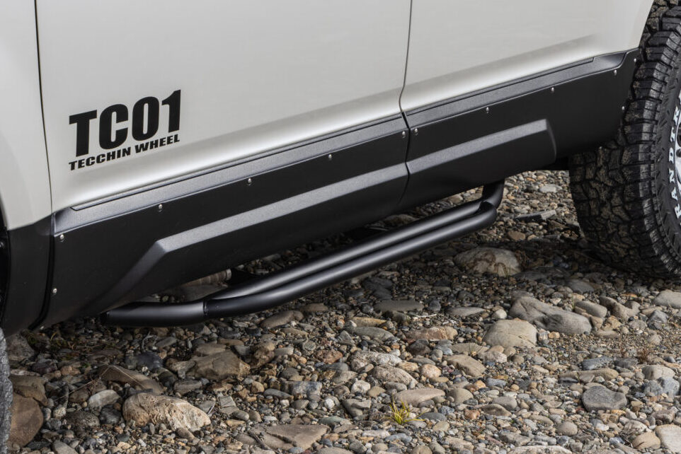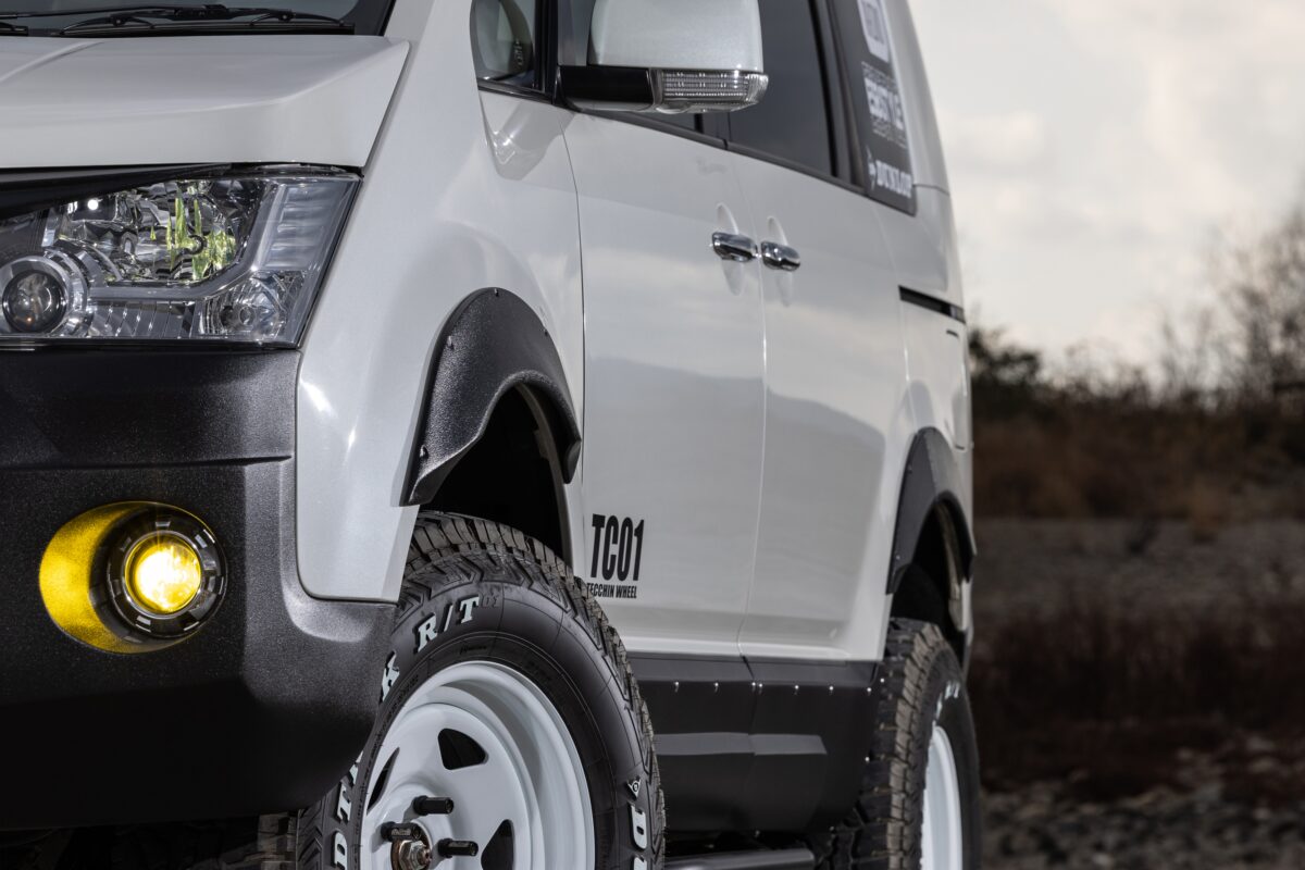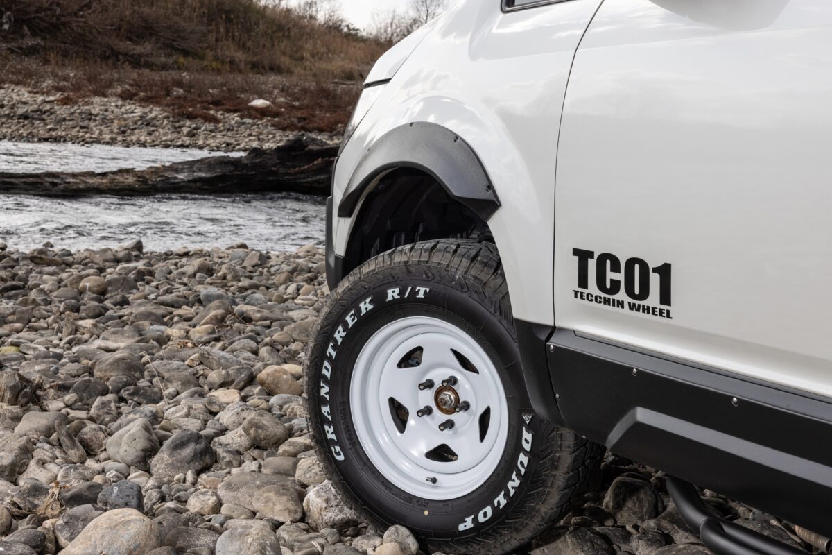 オーバーフェンダーは、オリジナルスチールホイール「TC-01」の専用サイズ「16×8.0J +13」が突出しないよう、フロントは30mmワイド、リアは25mmワイドに仕立てている。装着するだけでリフトアップ感が高められるアイテムだ。