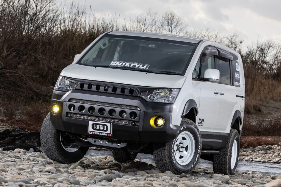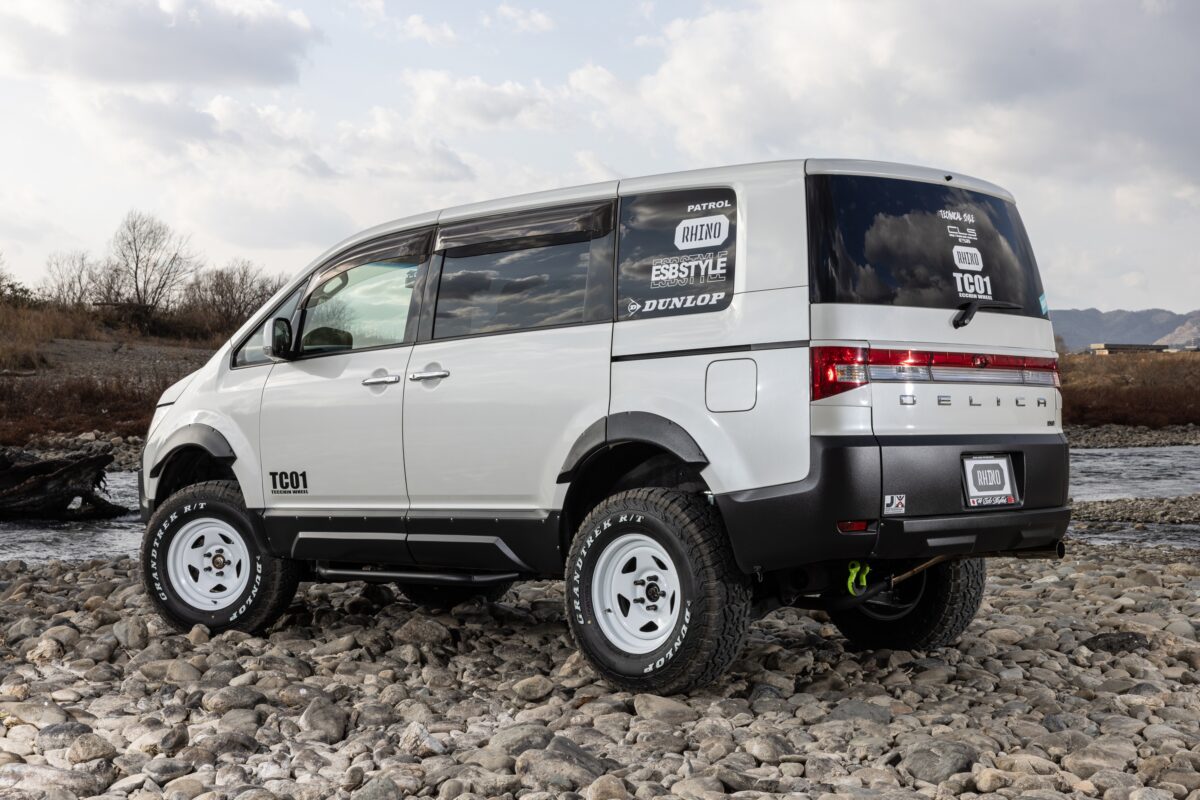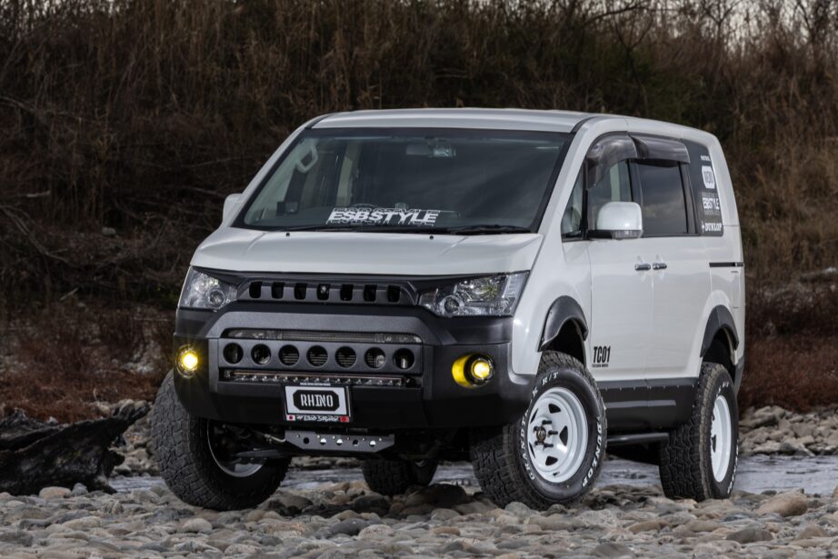 そんなESBが新たに立ち上げたブランドが「RHINO(ライノ)」だ。これまでESBでアゲ系といえば、「CLS UP」シリーズだった。ライノはそこから派生した新たなブランドで、よりハードな四駆スタイルを追求。その第1弾として選ばれたのが、“前期”三菱 デリカD:5なのだ。