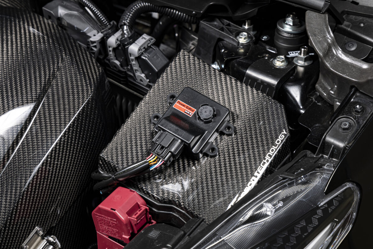 排気環境が整ったら、次はブーストアップに踏み切りたい。HKSではカプラーオン装着でパワーアップが可能な電子パーツ『パワーエディター』を用意する。その本体には、あらかじめブーストアップデータが入っており、簡単かつ安全に出力アップできる。