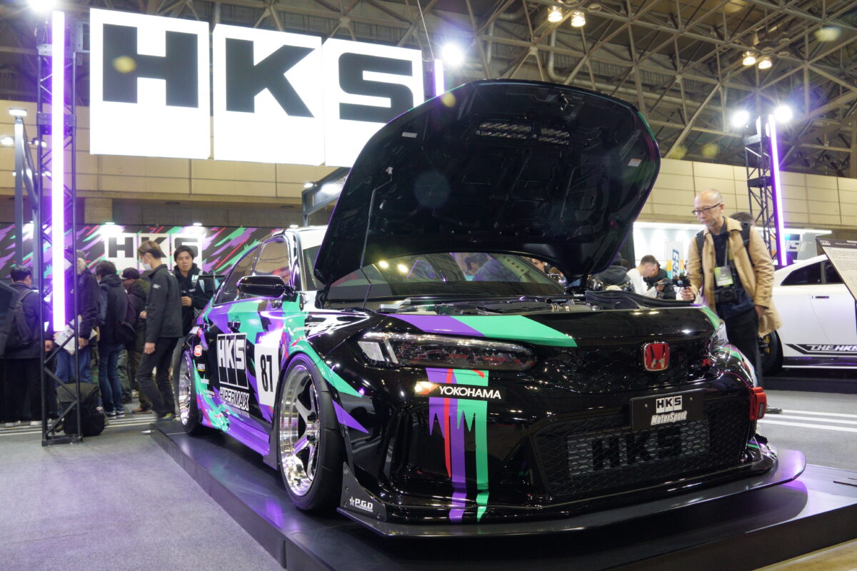 コンセプトを象徴する展示として、究極の例=コンプリートコンセプト「THE HKS」と、筑波サーキットでのタイムアタックを主眼としたシビックType Rベース車両「HKS Racing Performer FL550R」を配置。