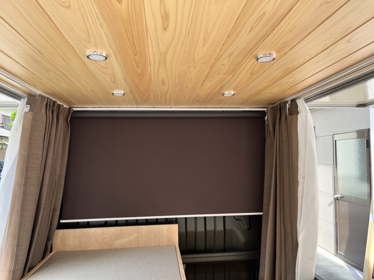 アルミパネルには30年以上使える材料を使い、ボックスの最前部や屋根の傾斜部にはカッターで切れ込みを入れ、曲げて仕上げた1枚モノを採用。天井には断熱アルミシートを挟み込み、高い断熱性を実現している。夏場にはサーキュレーターを使ってエアコンの風を回すことで、簡易的な保冷車としても利用できるのだ。さらに外板の内側に防音材を貼っているため、雨が打ち付ける音も大きく軽減しているという。