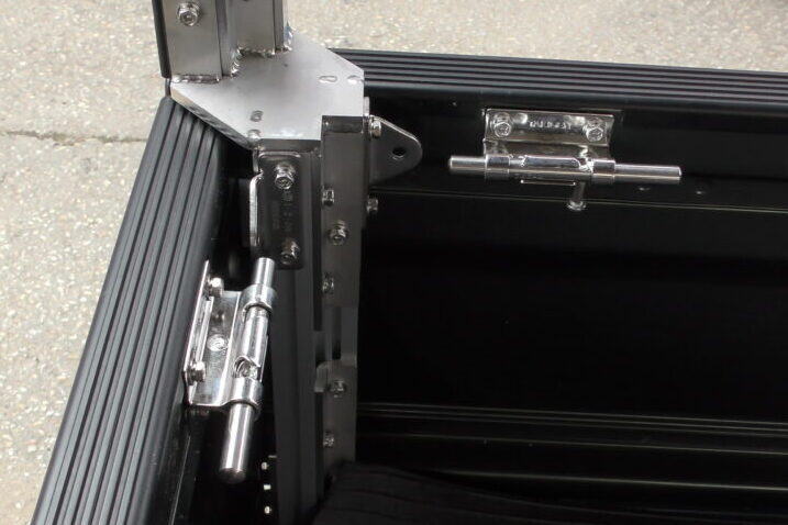 そこでランプスが開発したのが、カーゴボックスを取り付ける際に使うL字形状のステンレス金具。L字形状にすることでアオリに干渉せずにカーゴボックスが取り付けられる。つまり、カーゴボックスを取り付けてもアオリが開閉するわけだ。安全性を確保するため、ステンレス同士を食い込ませて内側と外側からレーザー溶接し、堅牢なL字金具に仕上げているのは言うまでもない。この金具の開発により、側板とアオリがツライチとなり、後付け感のないビジュアルという副産物まで手に入れている。