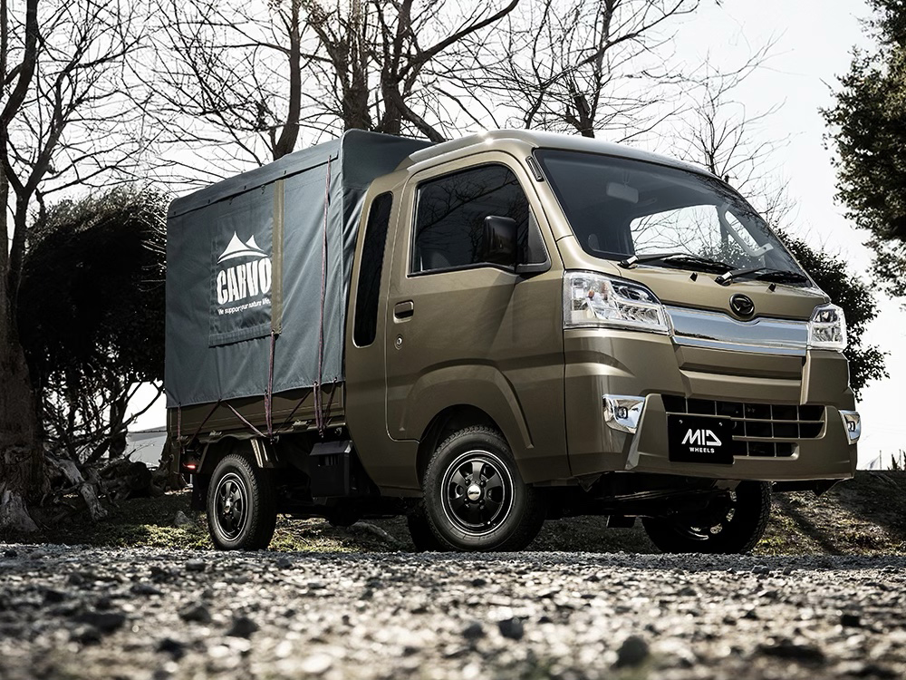 軽トラックにジャストな「12×4B +42」、軽トラックや軽自動車にピッタリな「14×5.5J +45」「15×5.5J +45」、ジムニーにピッタリな「16×5.5J +20」、ジムニー・シエラ用「16×6.0J −5」、ハイエースやキャラバンに装着できる「15×6J +33」「16×6.5J +38」「17×6.5J +38」、フリードやシエンタといったコンパクトカーに合う「16×7.0J +40」をラインアップしている。