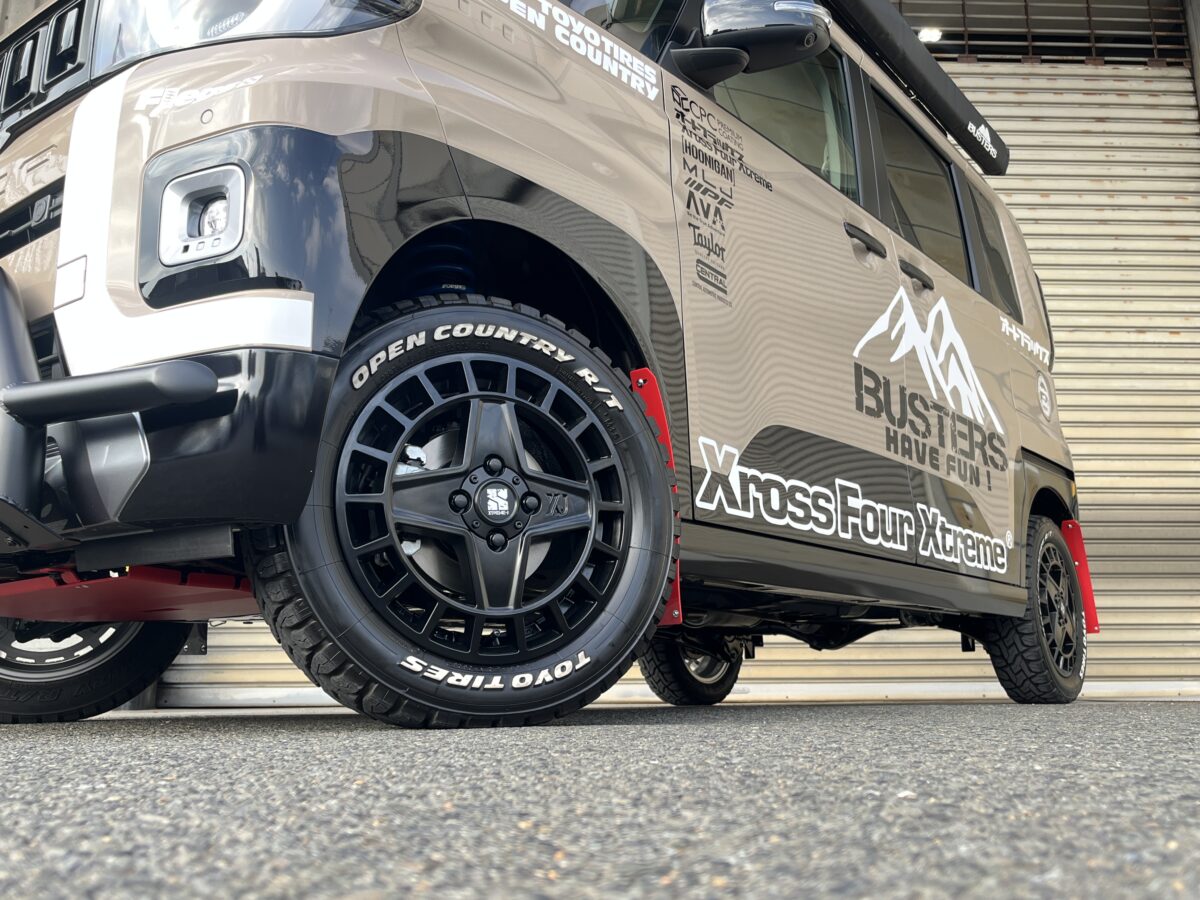 XTREME-Jシリーズの新作「QUAD(クアッド)」。珍しい4本スポークスタイルで足元をすっきりスポーティな印象を与えてくれる。SUVテイストの軽自動車とのマッチングも良好だ。