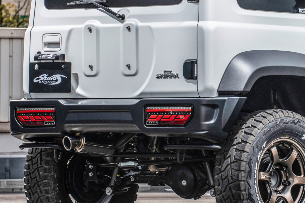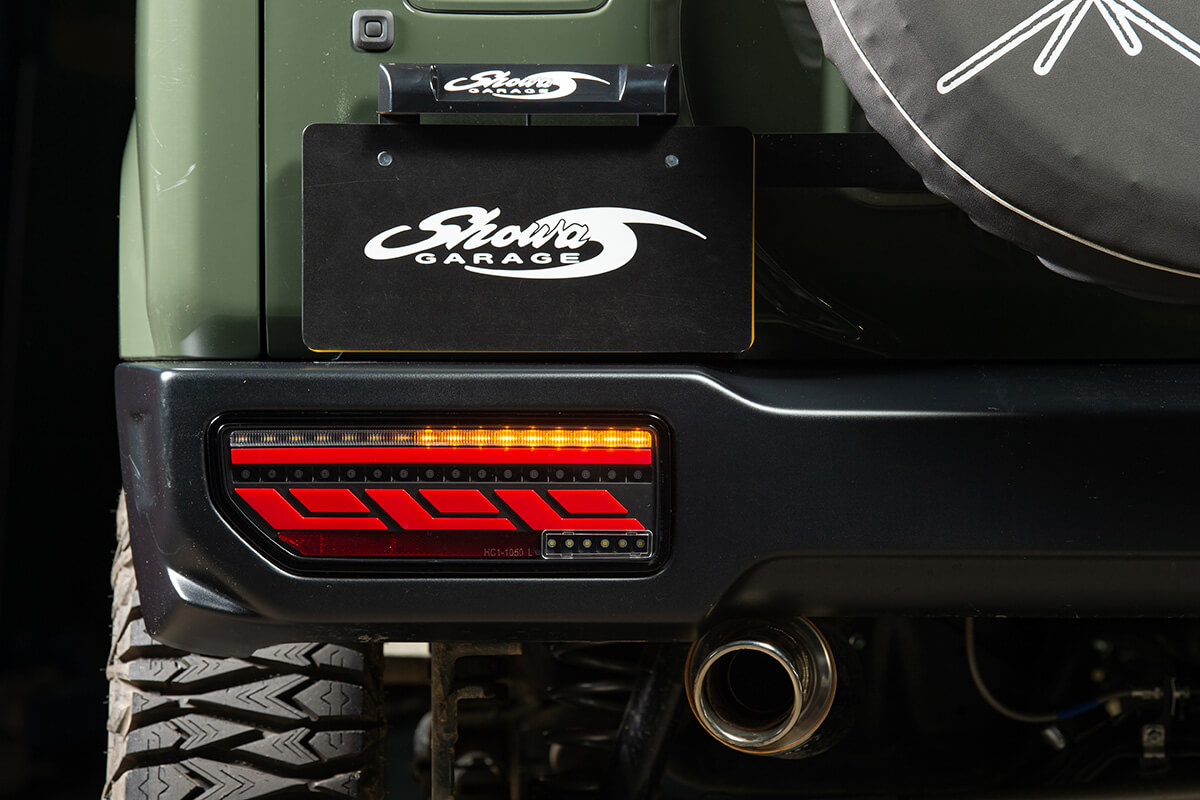 ショウワガレージはオリジナルのライトブランド”LIGHTNING(ライトニング)”を展開しているが、ジムニー用テールランプとして全5種類を用意している。オールLEDで、ブレーキランプは片側25個、バックランプに片側6個のLEDチップを使用。スモールはバータイプとなる。またウィンカーは内側から外側に向かってシーケンシャル点灯し、配線を切り替えれば通常点灯にも変更できる。