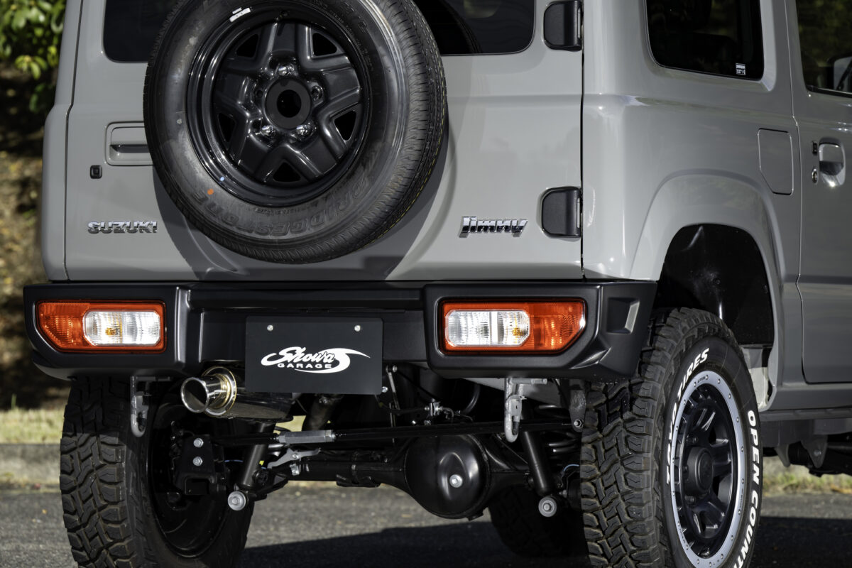 バンパースポイラーの素材は割れにくいABSを採用。表面に細かな凹凸を持たせたシボブラックのほか、ボディカラーと同色のものも販売する。前後バンパーともにJB64/74専用となっており、リアバンパースポイラーは背面タイヤの取り付け位置に応じてタイプ1、タイプ2の2種類を用意し、アルト用テールランプを使用することでより高さを低くしたタイプ(JB64用)もある。