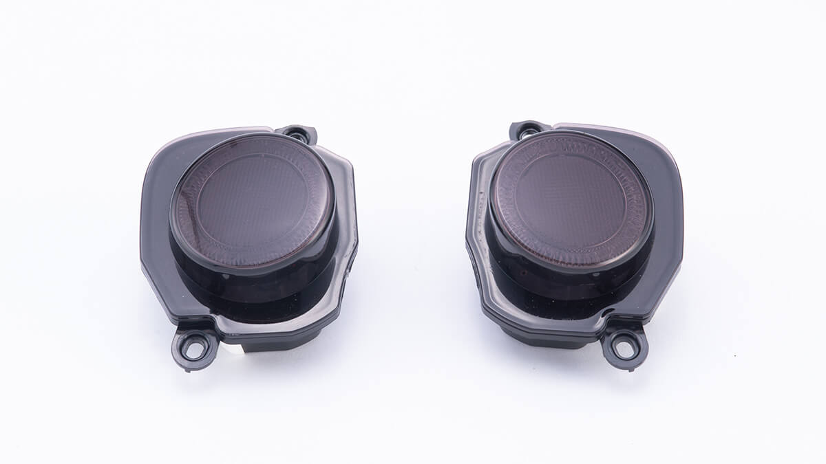 グリルまわりはクルマの印象を大きく左右する箇所だ。ジムニーのフロントウィンカーはヘッドライトの脇に配置されていて、ウィンカー変更でその雰囲気はガラリと変わる。ノーマルのウィンカーはカットが入ったオレンジレンズだが、ショウワガレージのフロントウィンカーはクリアとスモークの2種類で、モノトーンでシンプルなデザインのタイプ1、透き通ったレンズがすっきりした印象のタイプ2があり、全4種類のラインナップとなる。別売の抵抗セットを使えば、配線に加工を施すことなくカプラーオンで装着できる。