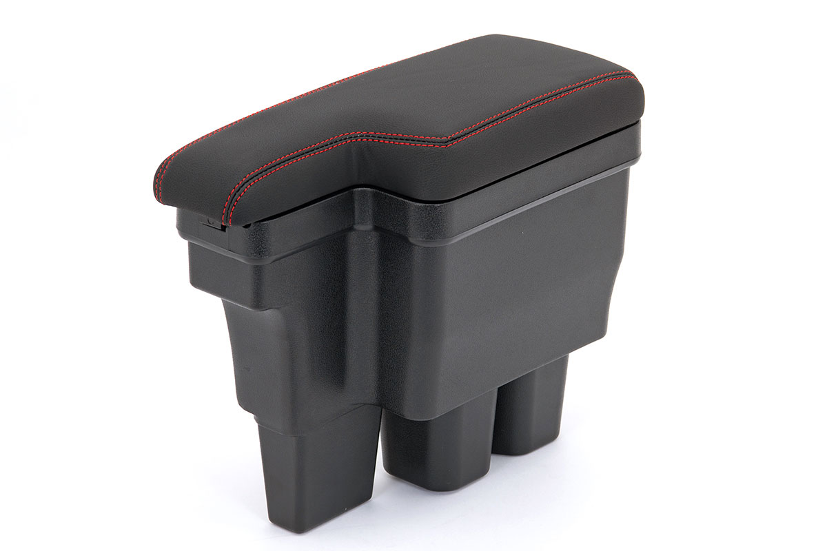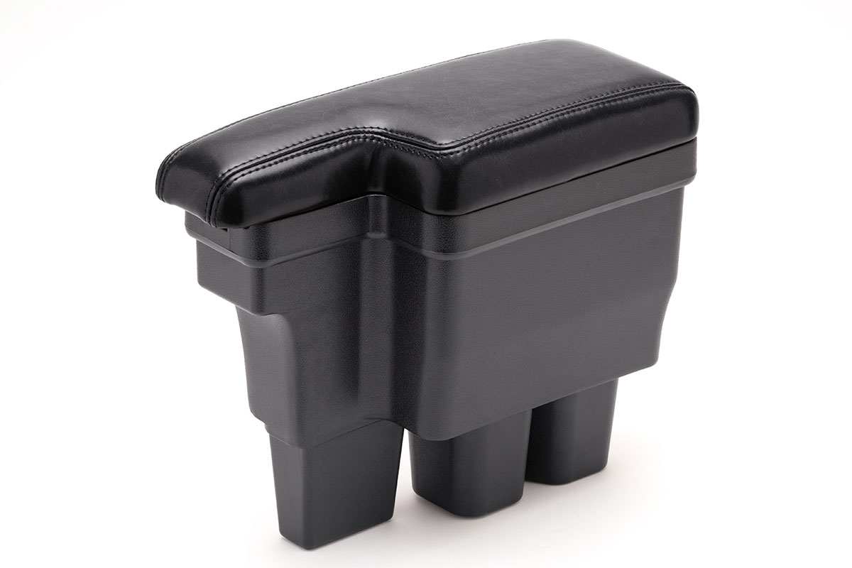 多くのジムニーユーザーが不満を抱くのがアームレストがないことだ。そういった声を受け、ショウワガレージではコンソールボックスを兼ねたアームレストを発売しており、こちらも大人気商品となっている。ひじを置く箇所をフェイクレザー(デニム)のクッションとして運転時の疲労を軽減しつつ、クッション部を開閉式として小物入れとしての機能も持たせている。アームレストの底面はもともとあるドリンクホルダーの形状に合わせて作られているので、置くだけでピッタリとフィットし、加減速の際やコーナリング時でも安定している。