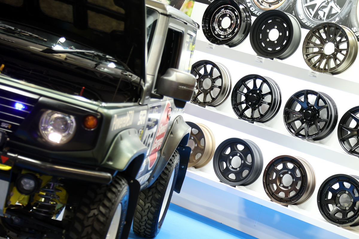 「ショウワガレージ」のジムニー用オリジナルパーツは膨大なアイテム数を誇り、なおかつ新製品が続々と開発されている。その中で、東京オートサロン2026での展示に力が入れられていたのがオリジナルアルミホイール。多様なジムニーオーナーの好みやカスタムスタイルにマッチするよう、さまざまなデザインと機能のホイールがラインアップされており、単体での製品展示に加え、一部のホイールはコンプリートデモカーに装着した状態でも披露されていた!