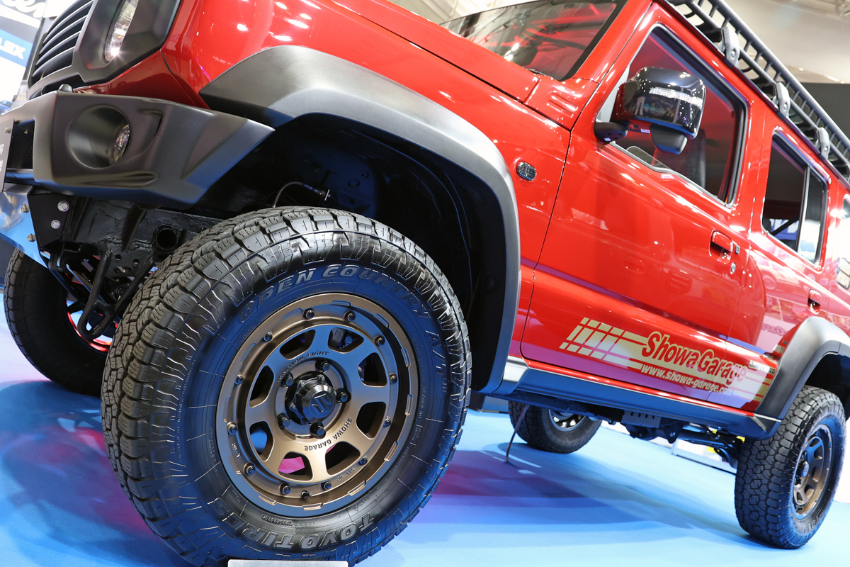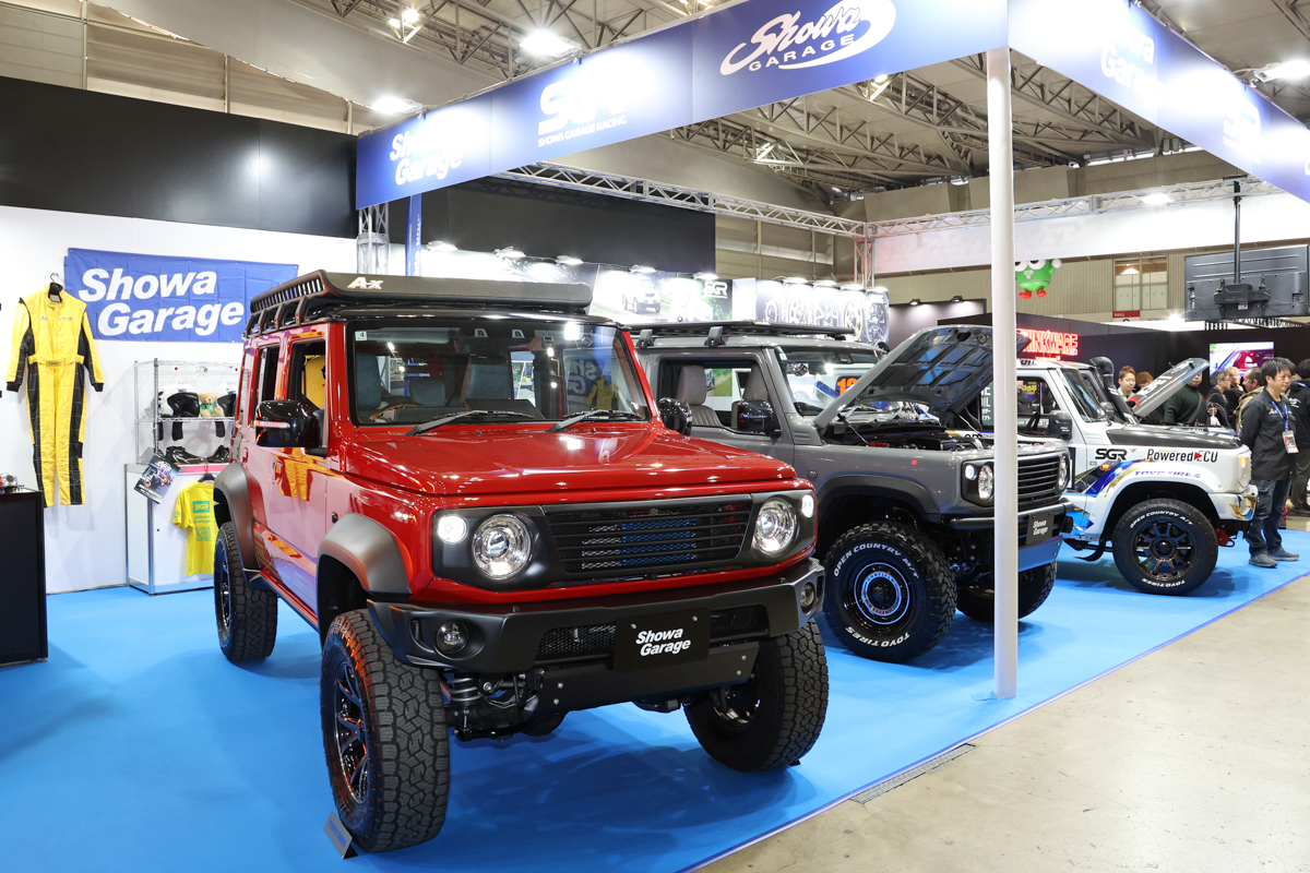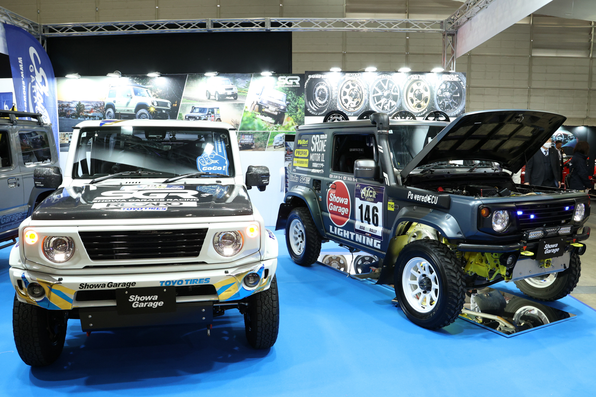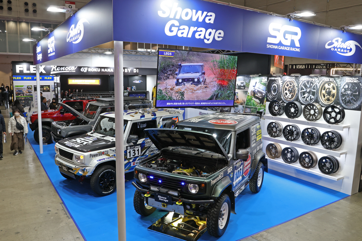 依然として高い人気を維持しているスズキ・ジムニーシリーズ。そのカスタムにほぼ特化した活動で注目を集めるのが「ショウワガレージ」だ。東京オートサロン2026でもその勢いはとどまることを知らず、広めの区画にデモカーとラリーマシンを2台ずつ並べ、アルミホイールやライトニングを中心としたオリジナルパーツもずらりと展示。個性を主張して多くの来場者を集めた!