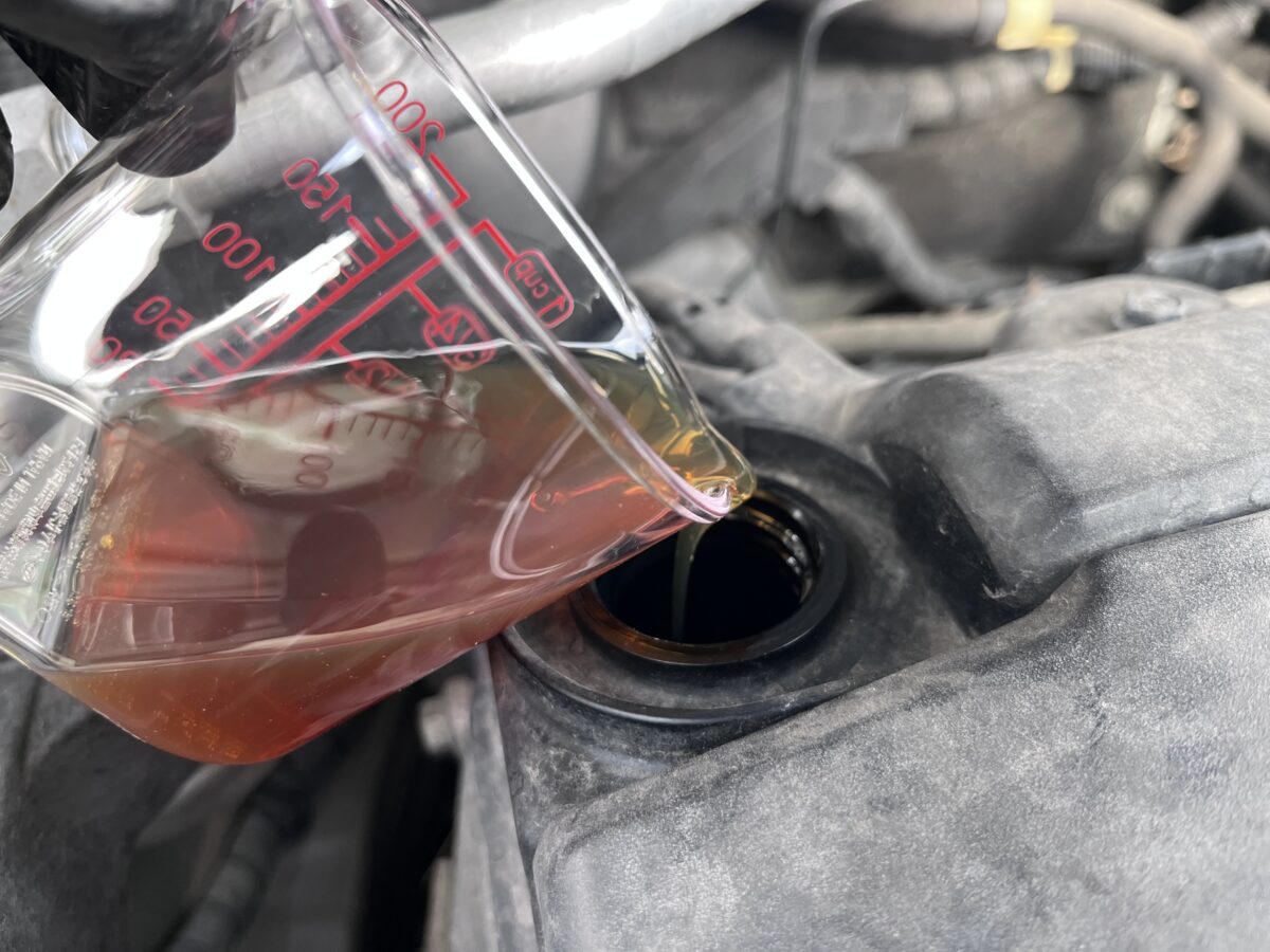 テスト車両のクロスロード(規定量3.5L)の場合、わずか175ccを添加するだけでOK。