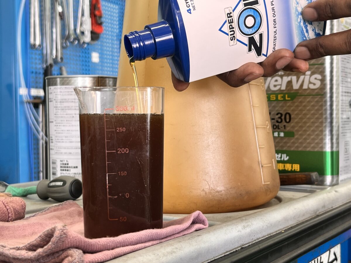 新しいオイルにスーパーゾイルエコを継ぎ足す