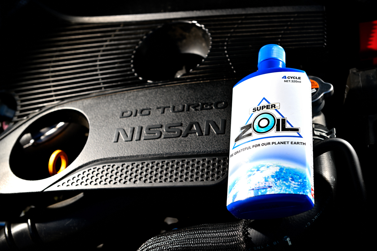 現在、4サイクルエンジン用のエンジンオイル添加剤としては、「スーパーゾイル ECO for 4cycle」(以降、スーパーゾイル ECOと表記)と従来品の「スーパーゾイル for 4cycle」の2種類があり、今回はこのうち「ECO」をテスト。こちらは、成分配合をさらに濃縮することにより、従来品と比べて半分の使用量で同等の効果を発揮できるよう開発された製品で、よりコストパフォーマンスに優れる(最小の200mlボトルで7480円)。ガソリンエンジンとディーゼルエンジンのどちらにも使用可能で、エンジンオイル総量の5%がスーパーゾイル ECOとなるよう、エンジンオイル注入口から添加するのが基本的な使用方法だ。