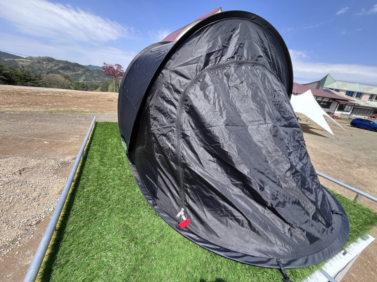 「カーゴボックス上部に敷いた人工芝です。この上にツェルトを立てて寝ることもできます。日本一周中に3回くらいここで寝ました笑」