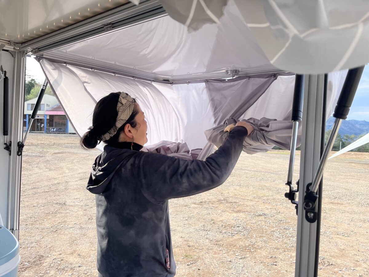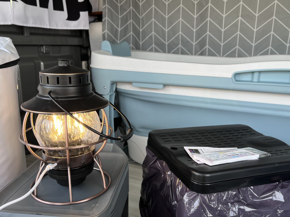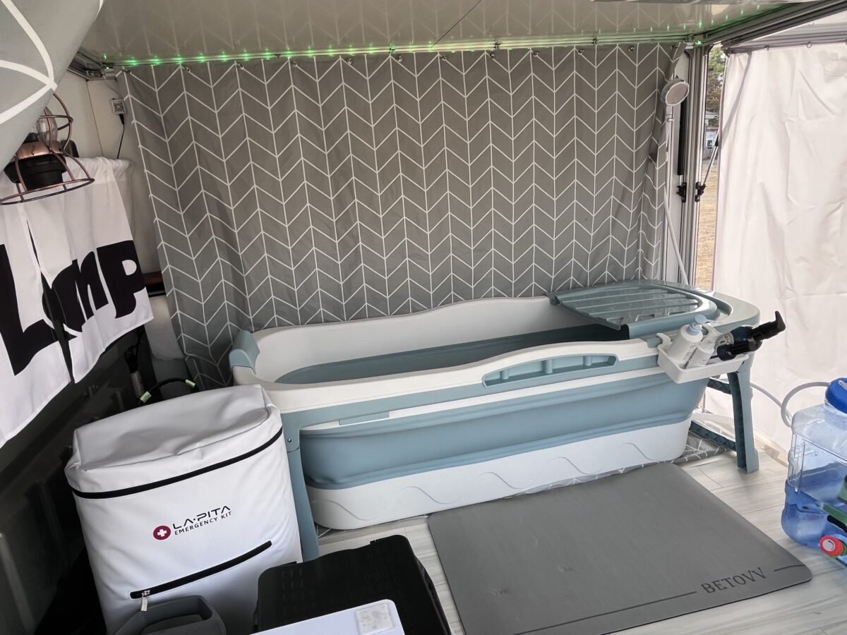 カーゴボックス内にはお湯を沸かせる設備があり、簡易トイレも完備。